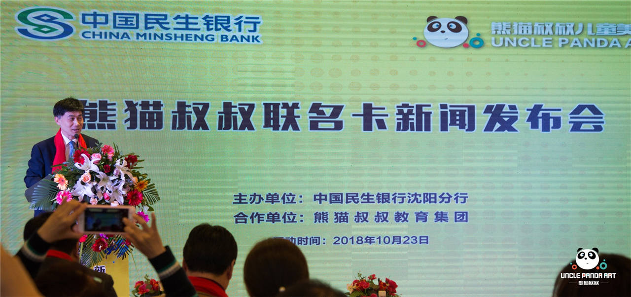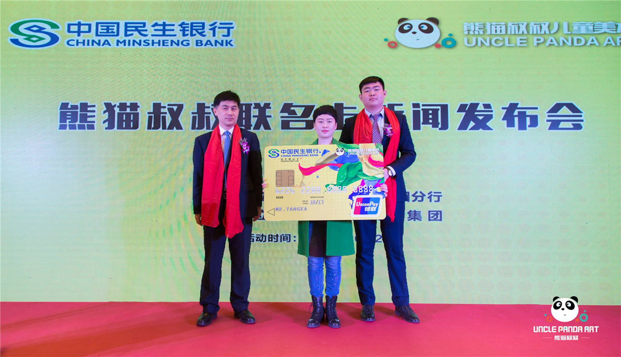 本次合作,借助民生银行这个平台推出熊猫叔叔专属联名卡,包括借记卡以及信用卡,对我们来说,这是一个契机,也是一个挑战。希望通过民生银行强大的品牌影响力能让中国美育行业的发展迈向一个新台阶,未来能为更多的中国家庭带来全新的艺术体验、更高的艺术价值以及更加多元化的艺术服务。并且,这只是一个开始,熊猫叔叔教育集团与民生银行在不久的将来还会有更加深度全面的合作,此次发布会标志着熊猫叔叔教育集团与民生银行开启了双方长期合作、共谋发展的新篇章。”